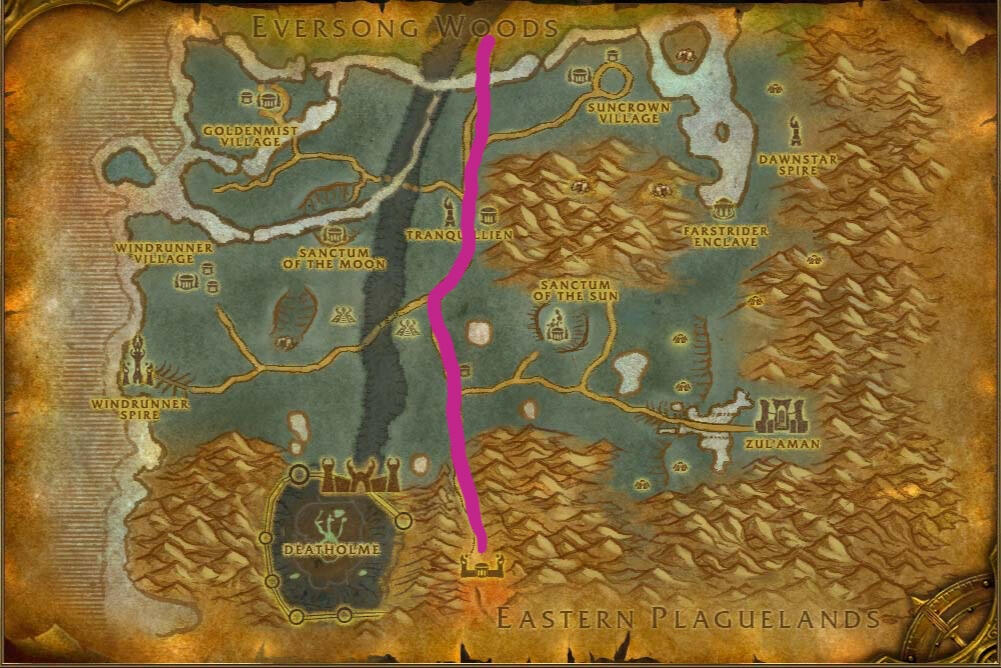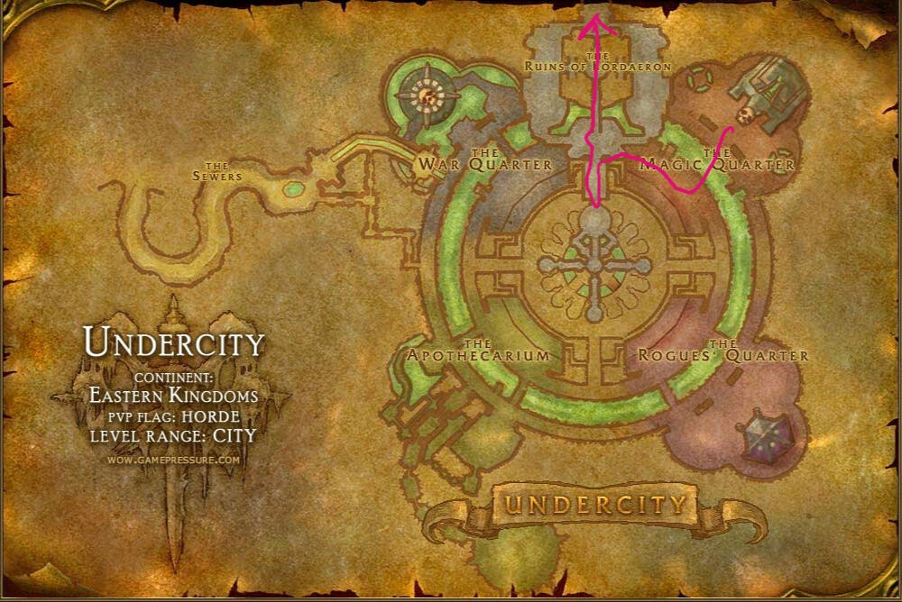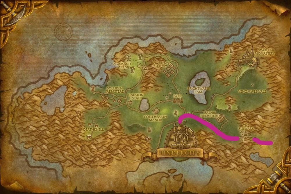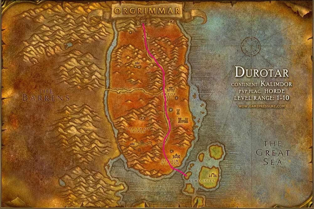 From the spot where you log in as a freshly spawned troll to the zeppelins. From there we’ll take the zeppelin to Tirisfal Glades and run through the Western and Eastern Plague